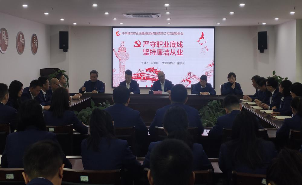 三是講黨課強黨性。市擔(dān)保公司黨支部書記、董事長尹福健以“嚴(yán)守職業(yè)底線,堅持廉潔從業(yè)”為題,圍繞“認(rèn)識新形勢反腐敗斗爭的形勢、腐敗出現(xiàn)的原因和防范措施、學(xué)習(xí)廉潔法律法規(guī),防范廉潔風(fēng)險、增強黨員領(lǐng)導(dǎo)干部拒腐防變的能力”四個方面,結(jié)合公司實際為黨員干部上了一堂生動的廉政黨課,警示黨員干部要增強“四個意識”,堅定“四個自信”,做到“兩個維護”,強化黨性修養(yǎng),自覺增強“免疫力”。